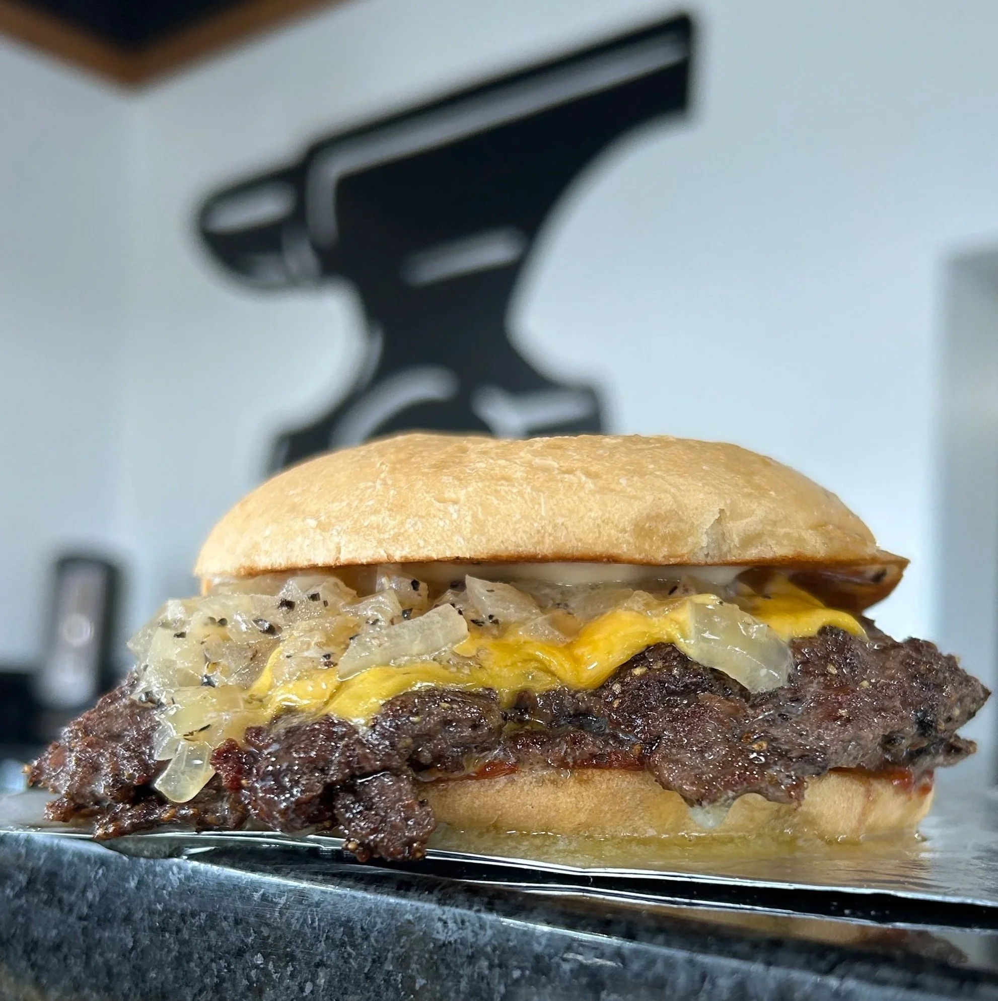 SEVEN HILLS BEEF PATTY, AMERICAN CHEESE, BUTTER, STEWED ONIONS, KETCHUP